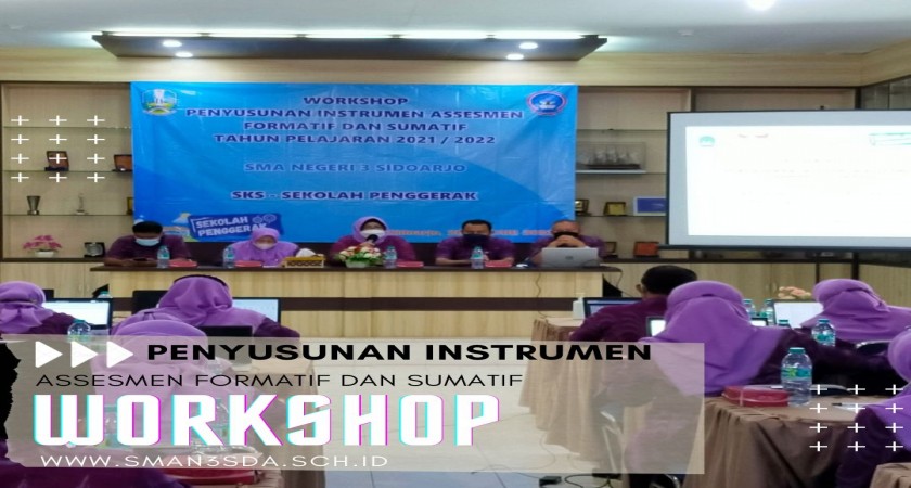 Dalam meningkatkan kemampuan guru dalam menyusun instrumen assesmen, SMAN 3 Sidoarjo melaksanakan kegiatan workshop penyusunan instrumen assesmen tahun 2021/2022, Kamis (20/01/2022). Kegiatan workshop yang berlangsung dua sesi ini diikuti oleh semua guru SMAN 3 Sidoarjo . Workshop ini dilaksanakan agar guru lebih siap menyusun assesmen penilaian untuk mengukur capaian pembelajaran baik capain pengetahuan maupun keterampilan peserta didik ungkap Dr. Ristiwi Peni, M.Pd., selaku Kepala SMAN 3 Sidoarjo.