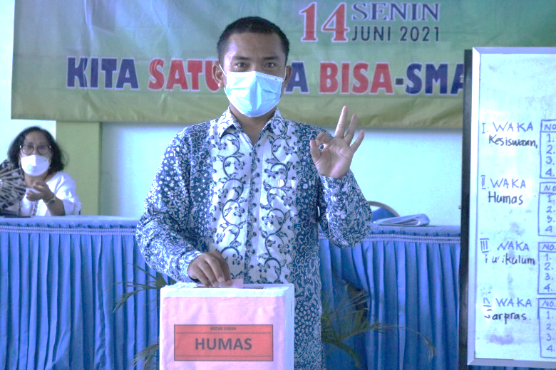 Pesta Demokrasi Pemilihan Waka SMAN 3 Sidoarjo Periode Tahun 2021 - 2024 dengan Tetap Menerapkan Protokol Kesehatan Covid-19